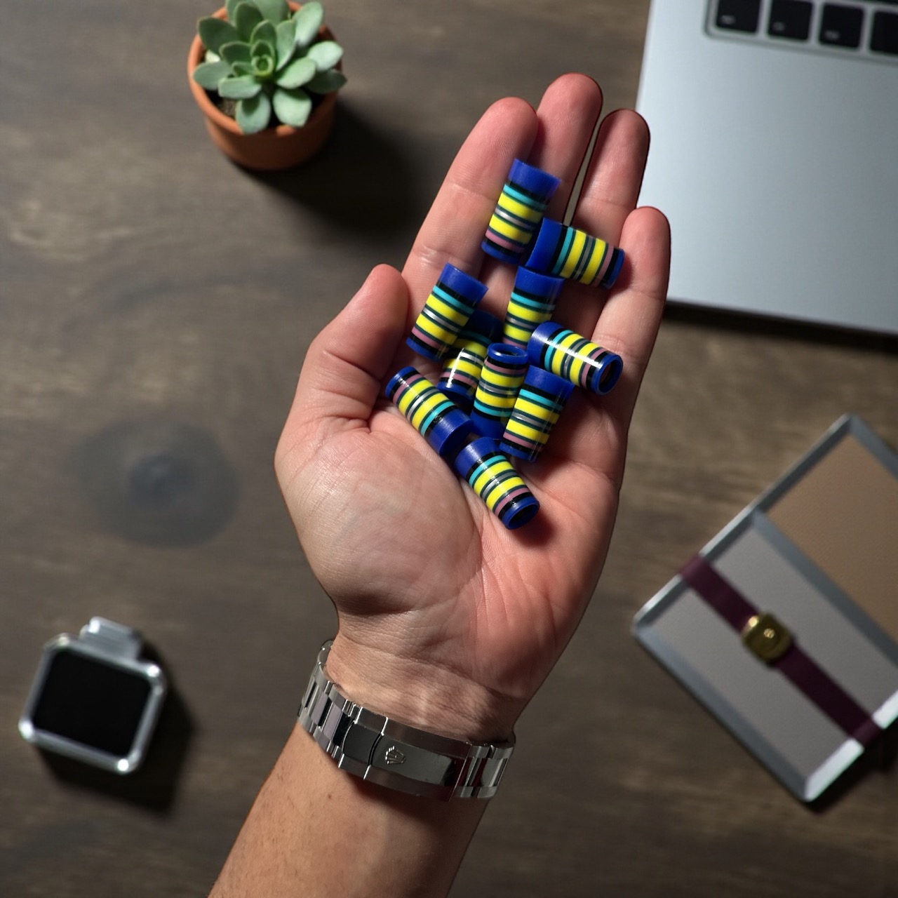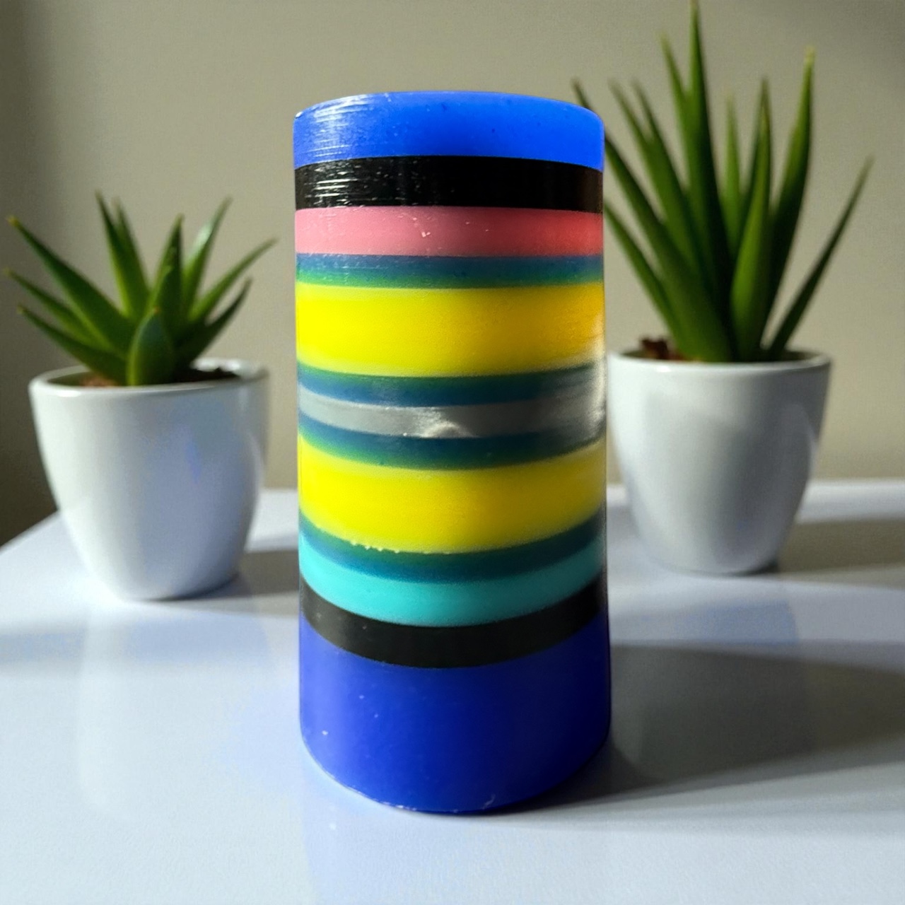 Blue, Black, Pink, Yellow, Dark Green, Silver, and Light Blue