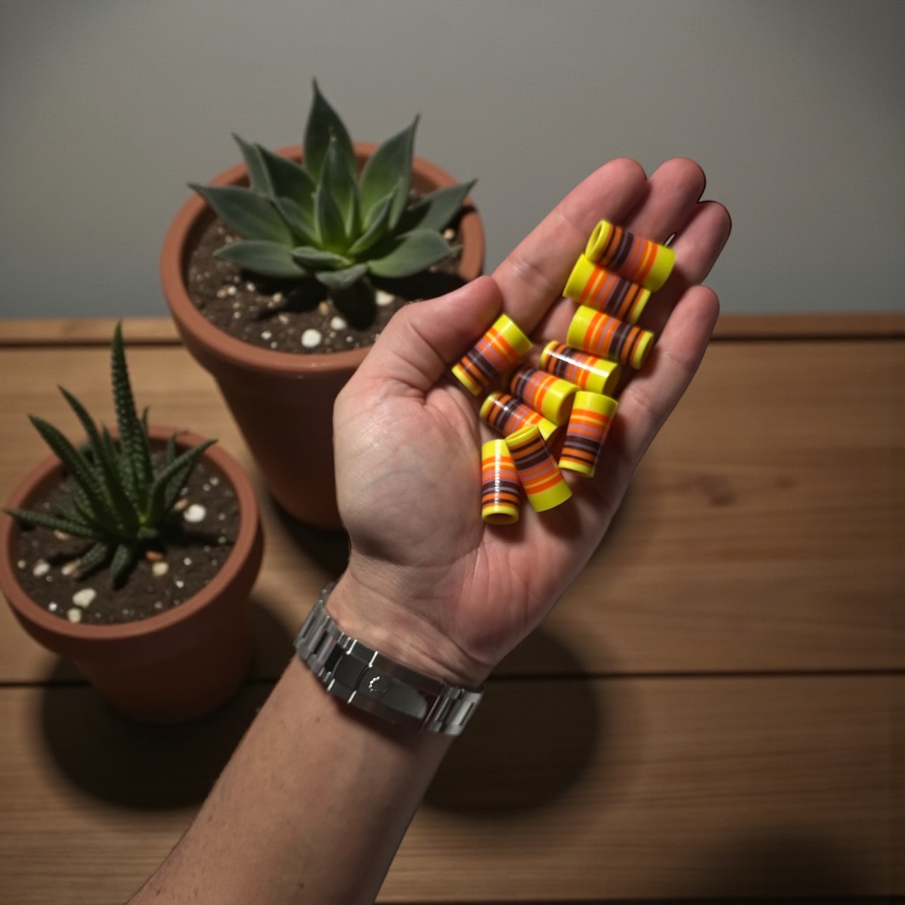 Glowing Yellows, Oranges, and Pinks fading into warm Amber and Brown.